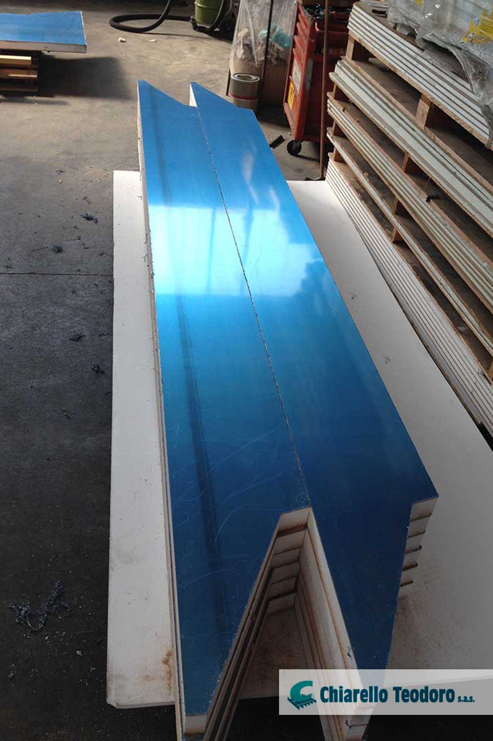 A partire da materie prime quali policarbonato compatto e alveolare, plexiglass, alluminio, acciaio, alucobond, legno, ottone, rame e pannelli isolanti compositi in doppia lamiera da parete e copertura fino a spessori di mm.100, Chiarello Teodoro è in grado di tagliare, sagomare e forare pannellature senza limiti di forme, quantità e dimensioni, grazie a un banco di lavoro da 6100x2080 mm, a un centro CNC e all'utilizzo di software Cad/Cam.